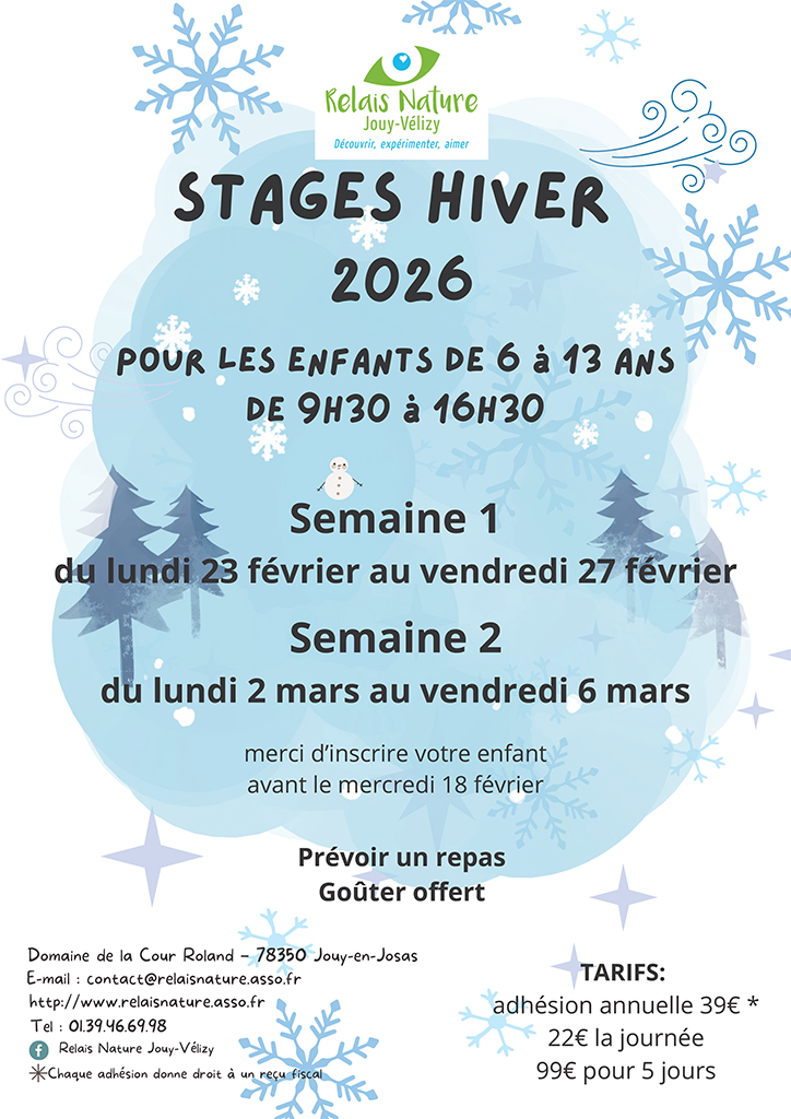 Renseignements - Inscriptions avant le 12 février : 01 39 46 69 98 - contact@relaisnature.asso.fr - www.relaisnature.asso.fr